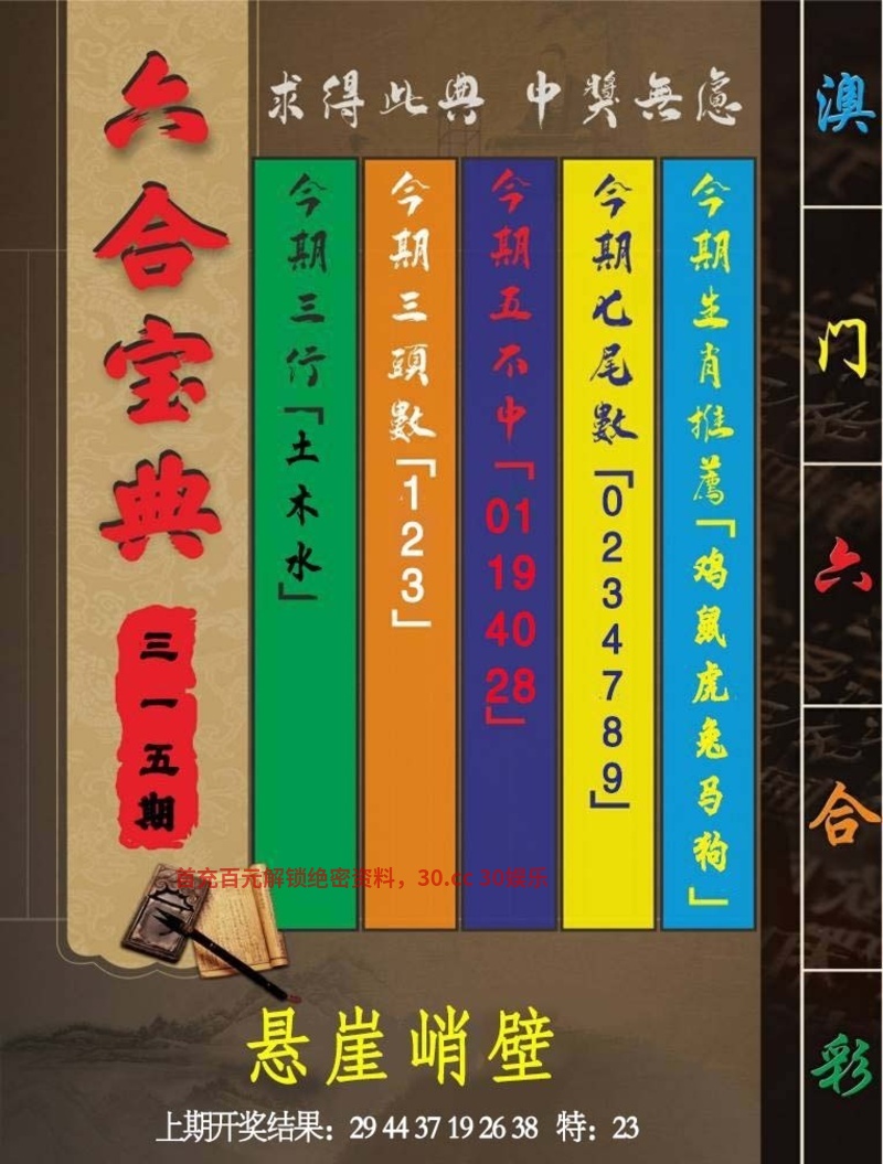 315期六合宝典《悬崖峭壁》 ①图解特肖:鸡鼠虎兔马狗 ②七尾中特:2934078 ③四码不中:01-19-40-28 本人取特都是有思路可寻,对错看天意,喷狗绕道 |
